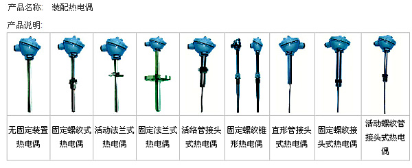 裝配熱電偶通常由感溫元件、安裝固定裝置和接線盒等主要部件組成。
