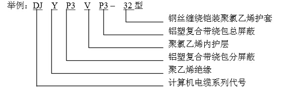 舉例:DJYP3VP3-32 銅芯聚乙烯絕緣聚氯乙烯護套鋁塑復合帶繞包分屏總屏鋼絲鎧裝